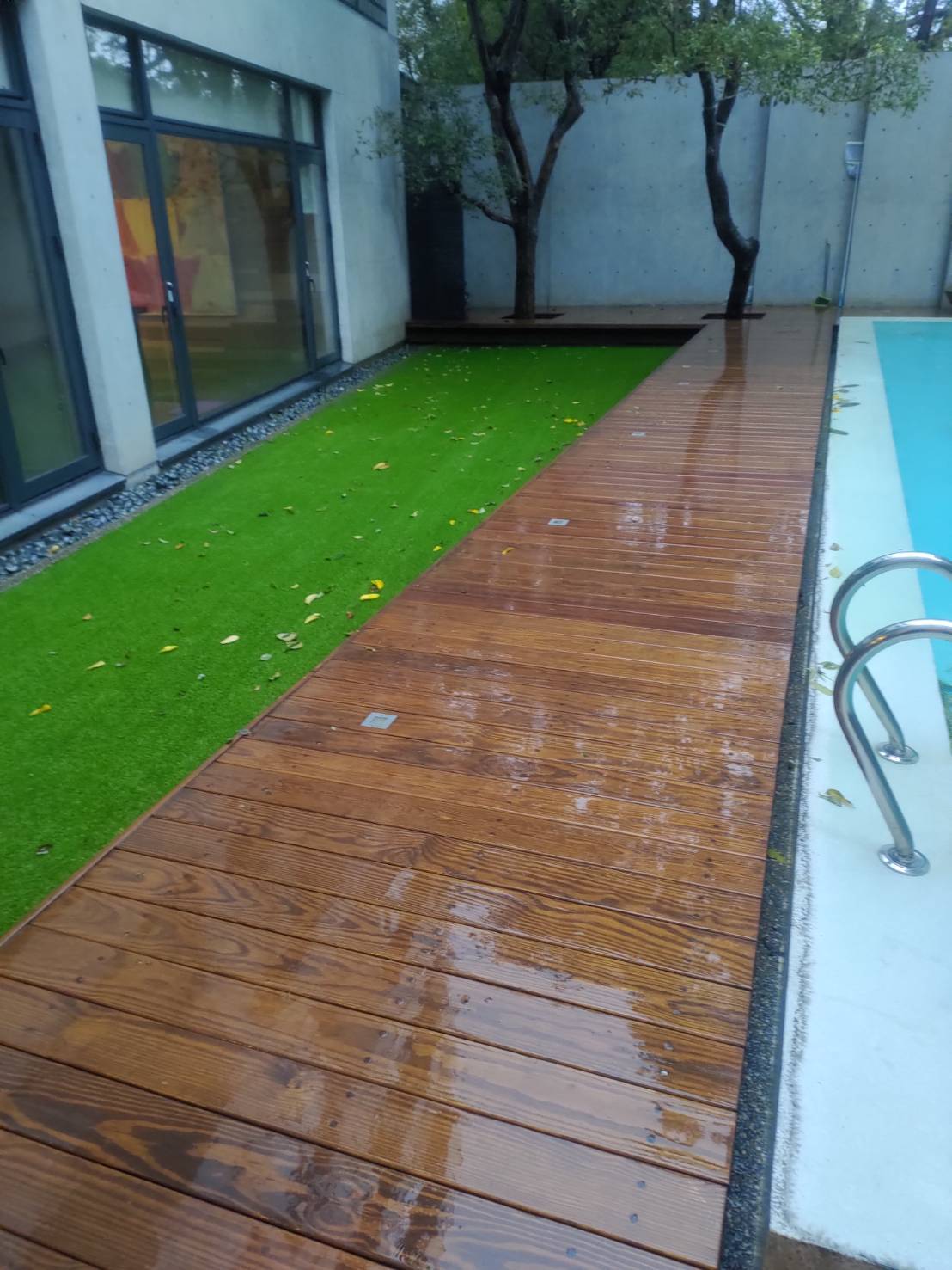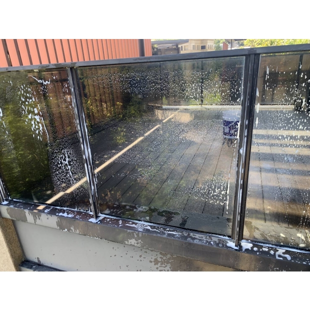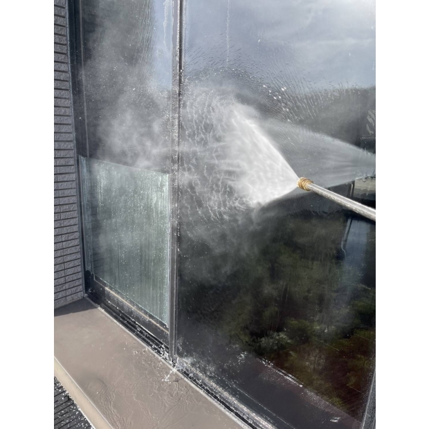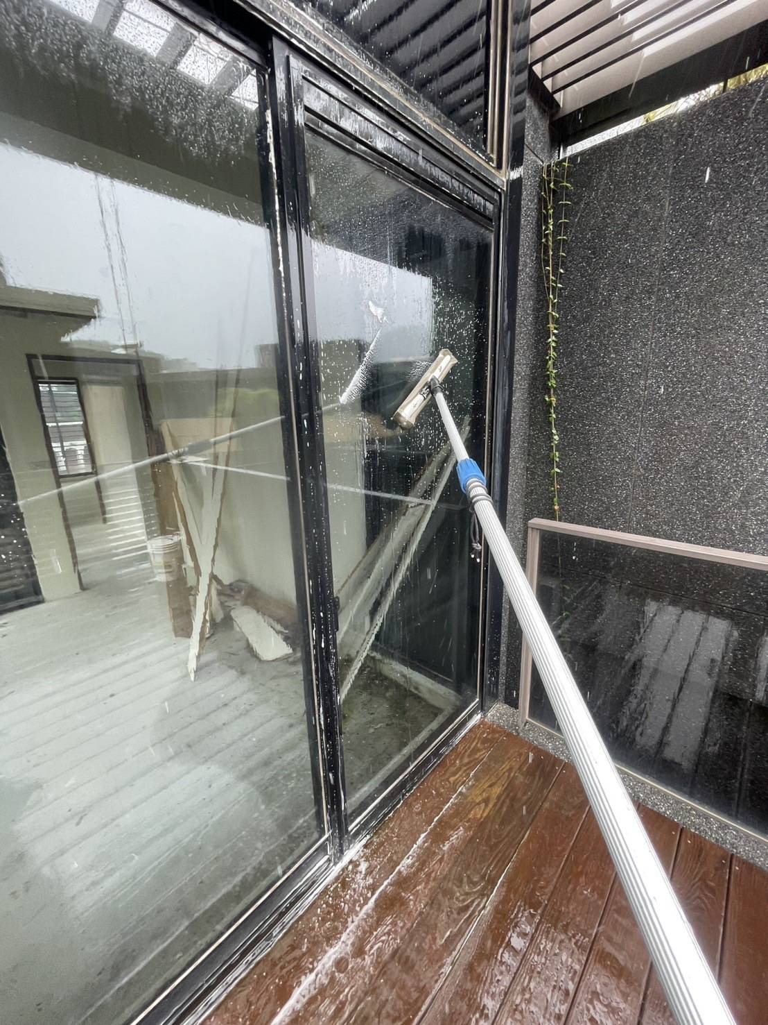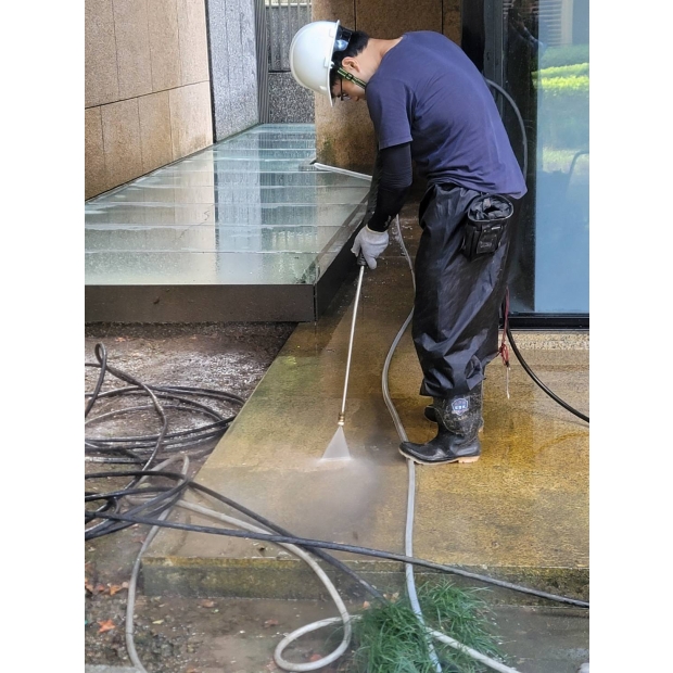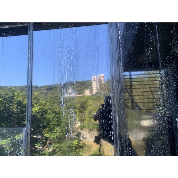 在高壓水刀下,經年累月的青苔無所遁形,只能在水柱下瓦解潰散, 成為一道道汙水流入水溝,還這清幽的別墅乾淨的外牆。 大片的落地玻璃濛上了一層灰塵,遮蔽了良好視野的美景。 使用中性清潔劑佐海綿刮刀細細清洗後,再以高壓水槍沖洗乾淨,窗外的美景依舊。 容易藏污納垢的木棧地板,也在高壓水槍的沖刷下,任何縫隙都乾淨溜溜。 經過我司專業團隊的清洗後,連空氣都變得清新,業主十分滿意。